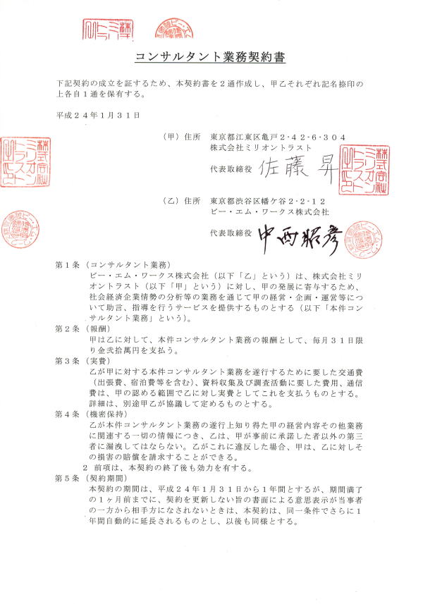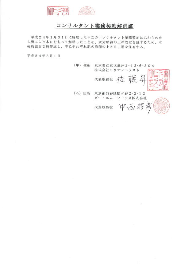 ![]() ※被告みずほ銀行の裏顧問を名乗る大津洋三郎と及川幹雄被告の関係 |