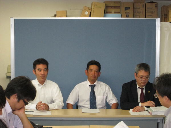 ![]() 平成28年8月19日、「朝日新聞を正す会」が甲府地方裁判所へ提訴後、山梨県政記者クラブ室にて公式に行われた記者会見風景。左から、東京本部事務局長の佐藤昇、代理人の米山健也弁護士。 |