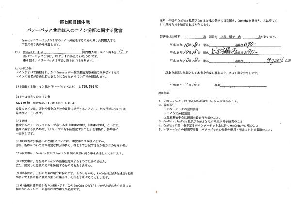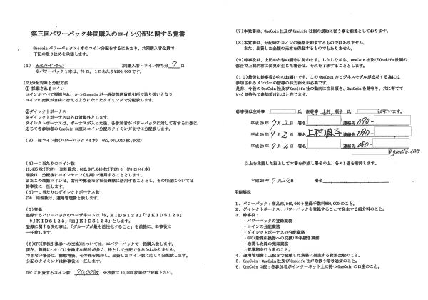 | 第三回パワーパック共同購入のコイン分配に関する覚書(平成29年7月24日付)に基づき、70万円支払い、しかし、なぜか100万円を支払わせられる。(コイン持ち分7口、1口あたりは10万円)(vol.64)
