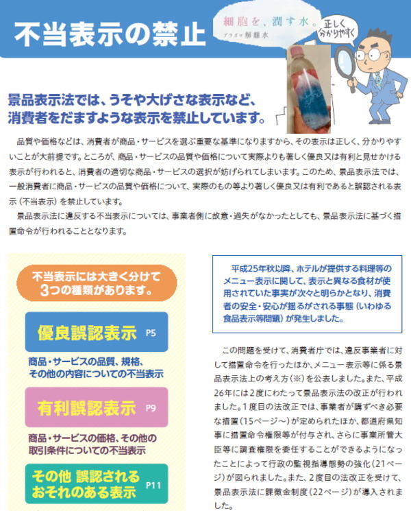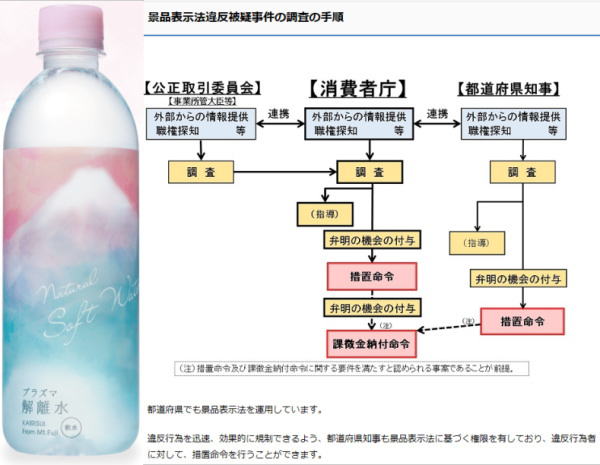 ![]() 「プラズマ解離水」を販売しているインターネットショッピングモールにおいて、疑義やクレームの存在等の事実の詳細を確認して、適切な対応を行うべきと考えて、「プラズマ解離水」を取り扱っているGratiae(グラチア、代表取締役:木下建志・旧姓:木下健士)とその関係者および消費者庁への照会が開始されている。インターネットショッピングモールから消費者庁への照会が開始されているような「プラズマ解離水」という食品を製造している株式会社山渓緑地(代表取締役:山下篤志、東京都葛飾区青戸8―5―16)の関連事業会社である株式会社FKみらいコーポレーション(山梨県南都留郡富士河口湖町河口1160―2、代表取締役:山下篤志)の設備で生産している富士麗水ビバレッジ株式会社(山梨県南都留郡富士河口湖町河口1160―2、代表取締役:山下大樹)が製造者責任を問われることにはならないのであろうか?Gratiae(グラチア、代表取締役:木下建志・旧姓:木下健士)の「プラズマ解離水」のネット上の食品表示が、景品表示法に違反する不当な表示に該当することはないことを、消費者の健康や生活のために信じるばかりだ。 (vol.5) |