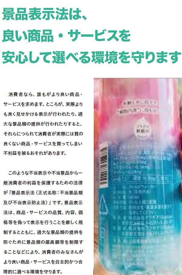 ![]() 消費者庁(伊藤明子長官)は、利用者から「表示と実物の産地が違う」「アレルギー表示がない」といった苦情が相次ぎ、健康被害も出ていることから、インターネットの通信販売で食品を購入する際、表示に注意するよう呼び掛けている。 Gratiae(グラチア、代表取締役:木下建志・旧姓:木下健士)の「プラズマ解離水」のネット上の食品表示が、景品表示法に違反する不当な表示に該当することはないことを、消費者の健康や生活のために信じるばかりだ。(vol.5) |