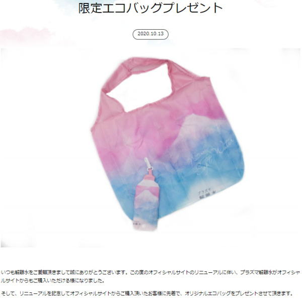 ![]() 「プラズマ解離水」が、令和2年10月中旬でもってナチュラルローソンでの販売が終了する予定であることを決定し、インターネットにおける販売は、店頭販売に先行して、既に販売を終了したことから、Gratiae(グラチア、代表取締役:木下建志・旧姓:木下健士)はインターネットでの直販を開始したのであろうか?(vol.4) |