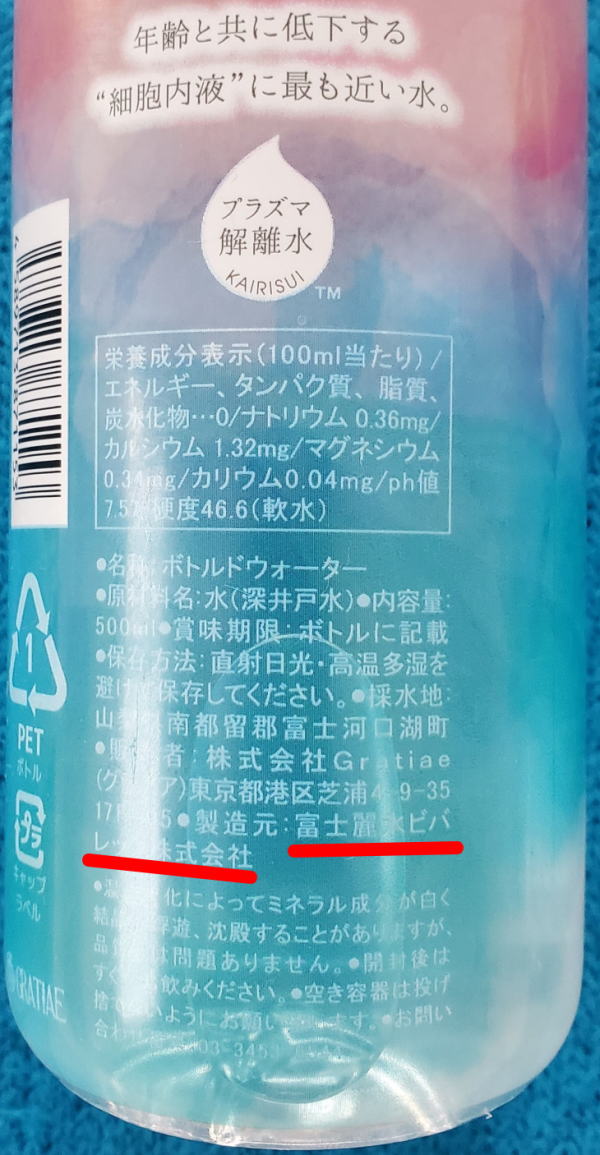 ![]() 株式会社山渓緑地(代表取締役:山下篤志、東京都葛飾区青戸8―5―16)のの関連事業会社である株式会社FKみらいコーポレーション(山梨県南都留郡富士河口湖町河口1160―2、代表取締役:山下篤志)の設備で富士麗水ビバレッジ株式会社(山梨県南都留郡富士河口湖町河口1160―2、代表取締役:山下大樹)が製造している「富士の麗水500ml」のペットボトル内にプラスチック片が沈んでおり、ペットボトルの飲み口が破損していることが、業務委託料請求事件の判決文から明らかになった。富士麗水ビバレッジが製造しているグラチアの「プラズマ解離水」は大丈夫なのであろうか?(vol.9) |