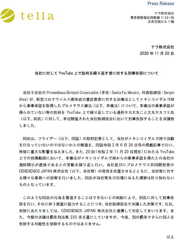 ![]() 東証一部上場企業ウェルビーの代表取締役社長・大田誠は、コロナ治療薬開発をめぐる反社会的勢力(暴力団山口組系元組長菅原潮)や日比谷公園で自殺した瀧本憲治(maneo創業者)をも巻き込んだインサイダー取引事件の舞台のジャスダック上場企業テラの創業メンバー(取締役副社長)の経営陣であったが、一体コロナに効く『5―ALA』を何に使おうとしているのであろうか? その1 ウェルビー大田誠が、他者との共感のない「今だけ、金だけ、自分だけ」の収益第一主義の新自由主義の資本の論理に基づくような、コロナ禍に日本国民が苦しみ、コロナ治療薬の開発の話題が国民的関心事である最中に、「何もしないのは落ち着かない性格」ということから、テラと同じ様な「コロナ株価操縦」のマネーゲームを繰り広げる「コロナ禍を利用した経済事件」のような事態には決してならないように、「大事なのは、己の金儲けよりも、人間としての品位である」との「利他の心」を大切にする新しい資本主義の理念に思いを寄せることを期待している。(vol.1) |