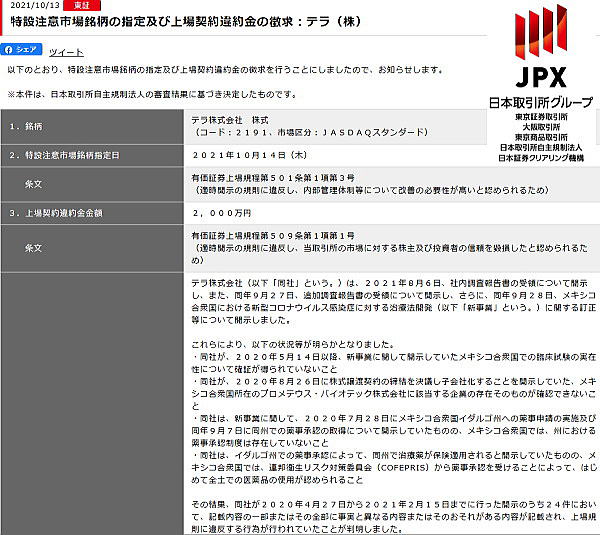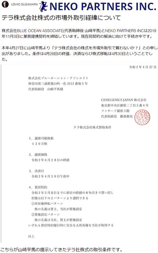 nbsp;![]() まさかの取引妨害指令を継続!SBIファーマが、2021年8月に入っても、またもや、不公正な取引方法(競争者に対する取引妨害)による通知をしている事実が明らかに!SBI北尾吉孝は中国に近過ぎはしないだろうか!?本当に北尾吉孝が頭取の第四のメガバンクはできるのであろうか!?SBI北尾吉孝に地銀再編政策を任せてもよいのかを日本国民は熟慮する時期にきているであろう。(令和3年8月16日SBI北尾吉孝記事vol.14) 東証一部上場企業ウェルビーの代表取締役社長・大田誠は、コロナ治療薬開発をめぐる反社会的勢力(暴力団山口組系元組長菅原潮)や日比谷公園で自殺した瀧本憲治(maneo創業者)をも巻き込んだインサイダー取引事件の舞台のジャスダック上場企業テラの創業メンバー(取締役副社長)の経営陣であったが、一体コロナに効く『5―ALA』を何に使おうとしているのであろうか? その2 2022年2月25日、東京地検特捜部や警視庁捜査2課は、ジャスダック上場企業テラの金融商品取引法違反(インサイダー取引)に関連して、テラの顧問を務めていた大樹総研の矢島義也の関係先を家宅捜索した。ウェルビーの大田誠は、一体「令和の政商」らしき現代の児玉誉士夫との触れ込みの大樹総研の矢島義也との関係性を何に使おうとしているのであろうか?「利他の心」を大切に。(vol.2) |
