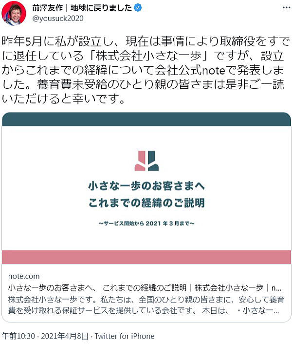 ![]() 宇宙へ行った男・前澤友作創業小さな一歩その後 その5 前澤友作創業小さな一歩の違法性を問う訴訟(東京地方裁判所 令和3年(ワ)第31012号、原告:福永活也弁護士(ひとり親支援法律事務所代表)、被告:山口三尊)において顕在化した「企業(小さな一歩)が仲介する保証契約」の問題点 「営利を前提とした第三者(小さな一歩)が介在することで、相当な費用負担をさせるものも散見される」「監督庁がなく業務内容などの検証も不十分で、利用は推奨できない」「保証料を支払うことは、本来、子どもの養育に充てられるべきお金の一部が企業(小さな一歩)にわたることだ。国は保証料の金額が妥当かなどについて、早急にルールづくりをすべきだ」(vol.5) |
