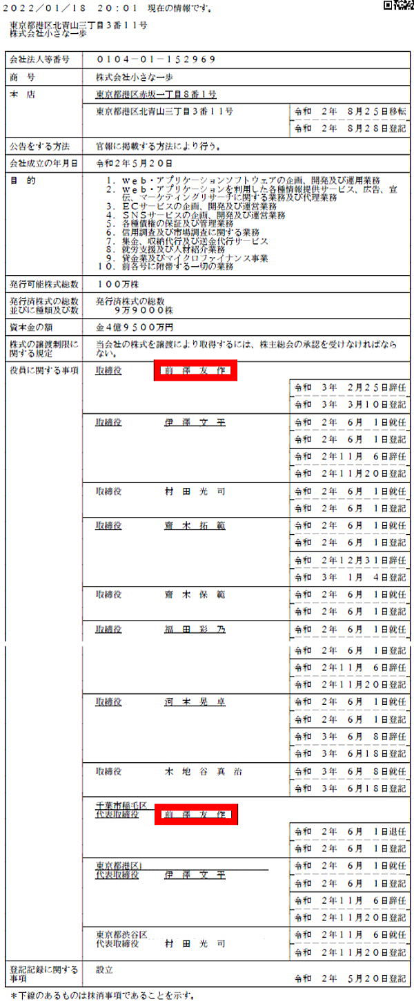 ![]() 前澤友作創業小さな一歩その後 その1 2022年1月18日10時40分から東京地方裁判所司法記者クラブで山口三尊さんが記者会見を行った。それは、宇宙へ行った男・前澤友作が創業した「株式会社小さな一歩」が要因となっていた。(vol.1) |