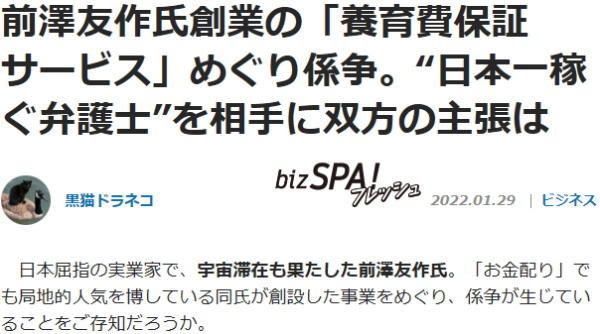 ![]() 宇宙へ行った男・前澤友作創業小さな一歩その後 その3 前澤友作創業小さな一歩の違法性を問う訴訟(東京地方裁判所 令和3年(ワ)第31012号、原告:福永活也弁護士(ひとり親支援法律事務所代表)、被告:山口三尊)、本事件の争点・小さな一歩の「養育費あんしん受取サービス」と称するサービスは、弁護士法73条(譲り受けた権利の実行を業とすることの禁止)に違反しないのか?(vol.3) |
