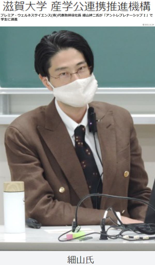 ![]() 細山紳二が、松浦清の現代には貴重なベンチャー精神に付け込んで、佐藤均昭和大学教授と共同で共謀して、プレミアアンチエイジングに、CBD(カンナビジオール)の事業化の定型的な稟議承認をさせたのではないのか!? 2021年11月18日、細山紳二は、滋賀大学で、これから社会に出る学生に向けて講義をした。 2020年8月28日、細山紳二は、プレミアアンチエイジング(代表取締役:松浦清)とCBD(カンナビジオール)の関係者を初めて引き合わせた際に、どのような講義をして、CBD(カンナビジオール)の事業化の定型的な稟議承認をさせたのであろうか? それがこの裁判で明らかにされていく。 |