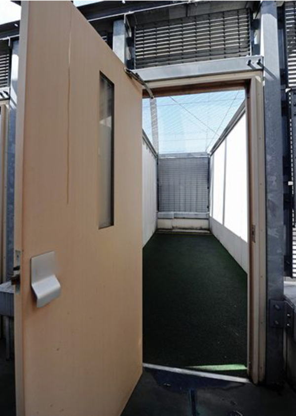 ![]() 東京拘置所の屋上の金網で囲われた独居用運動場の入口扉 日本最大のミステリースポット東京拘置所での生活はどうなっているのか? その2 お風呂は週3回(今春から)。洗濯は週4回。ゴミ上げは週2回。書籍の差入は一回3冊以内。新聞は、5紙から2紙までを1ケ月単位で購入。郵便の発送は1日1通。室内体操は1日2回。戸外運動は、平日に1回、30分間、屋上で行う。(vol.2) |