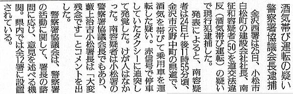 能登半島地震による被災地の現状 その5 まさかの南征和逮捕だった!2014年1月25日、石川県警金沢西警察署は、誠和建設株式会社代表取締役社長南征和容疑者を道路交通法違反(酒気帯び運転)の疑いで現行犯逮捕した。誠和建設の南征和容疑者石川県警小松警察署の警察署協議会長であった。このような石川県直轄の一般社団法人石川県構造物解体協会(会長:今村秀憲(株式会社金沢斫解体業代表取締役))の副会長で、輪島市を請け負うブロック長の誠和建設株式会社(代表取締役:南由美子、会長:南征和)には、日本政府予算の予備費から支出された総額8150億円の巨額の資金の振り分けや、地震と豪雨の被害からの復旧・復興を一体として進める被災者や事業者がなりわいの再建を行えるようにするための創造的復興はできないといえるのではなかろうか?(vol.5)