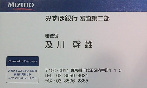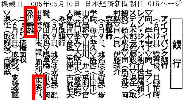 「I'll be back」及川幹雄(みずほ銀行元審査役)が戻ってきた その8 2001年4月28日、消費者金融プロミスの副社長で筆頭株主の神内英樹が47歳の若さで、肺がんのため逝去した。葬儀の喪主は妻の由美子であった。そして、神内由美子は遺産の総額が約1578億円で歴代3位となった。その後、みずほ銀行本店元審査役にまで出世した及川幹雄のスポンサーとなった。みずほ銀行の闇は、全く晴れていない。(vol.8) |